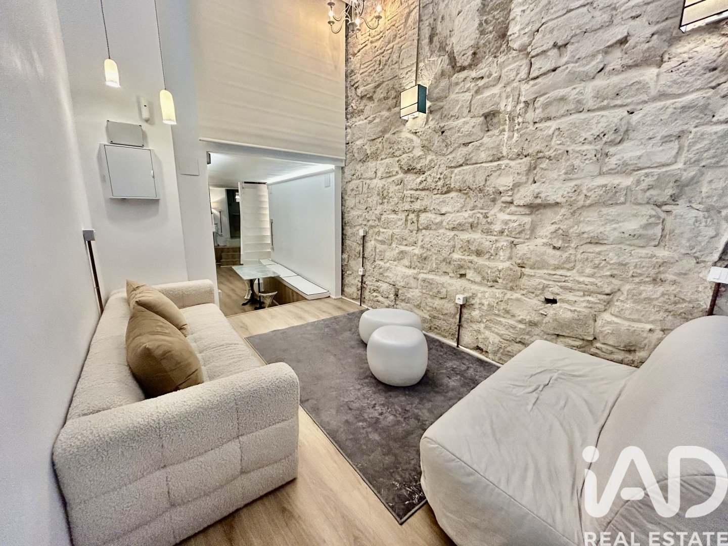 • High ceilings, stone walls, parquet flooring and natural interior light
