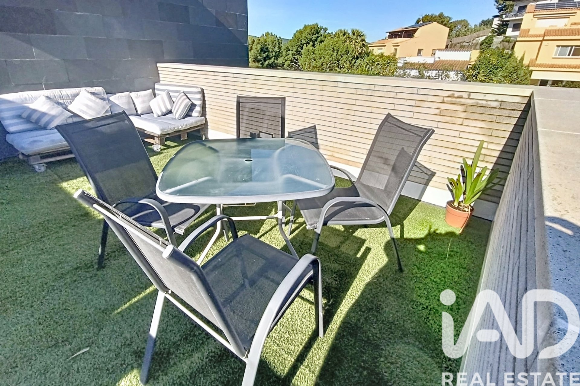 A central staircase leads to the upper floor, where you’ll find a private rooftop solarium. This impressive outdoor space offers unobstructed views of the Vallpineda urbanization and the surrounding natural landscape — perfect for relaxing, sunbathing, or enjoying outdoor meals in total privacy.