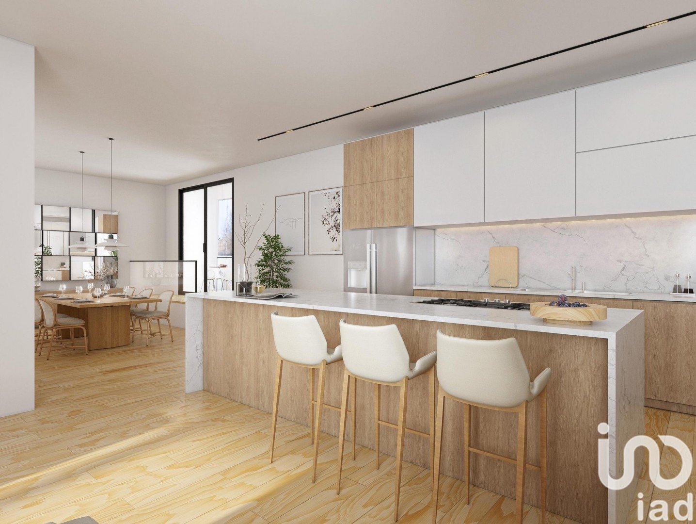 - Large open-plan living-dining area with integrated kitchen (74m²).