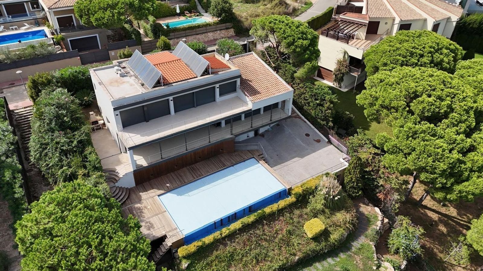 Outside, a private garden and swimming pool create a serene environment for relaxation and outdoor living. Energy-efficient features such as solar panels, natural gas heating and air conditioning ensure year-round comfort.